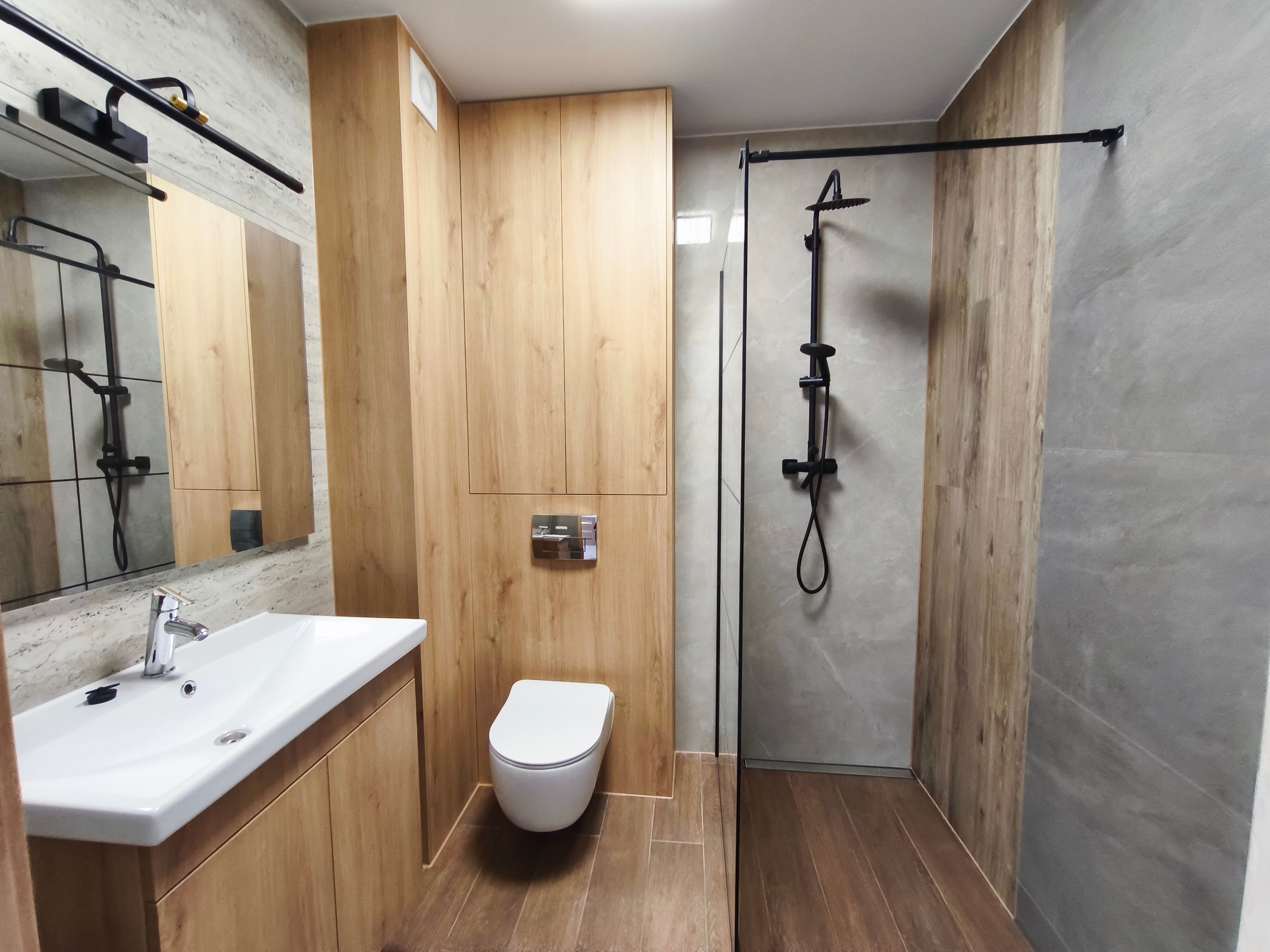 Drugie mieszkanie natomiast na powierzchnię około 45,79m2 i składa się z: