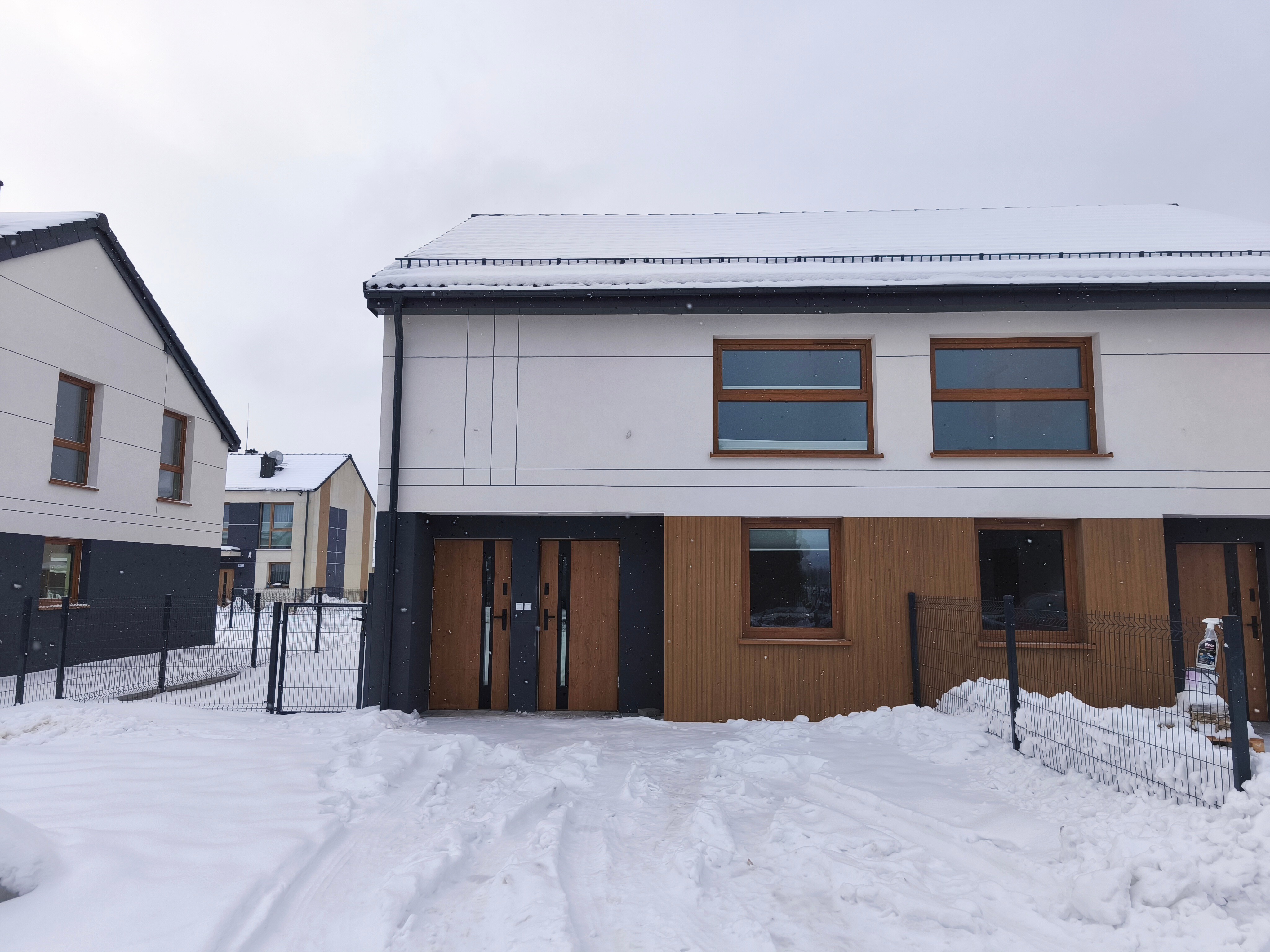 Budynek wybudowany został z silki 18cm, ocieplony 15cm styropianem, strop pianą, wewnątrz tynki gipsowe, dach pokryty dachówką. W budynku wszystkie media: woda, kanalizacja, prąd i gaz. Ogrzewanie podłogowe gazowe. Osobne liczniki w każdym mieszkaniu.