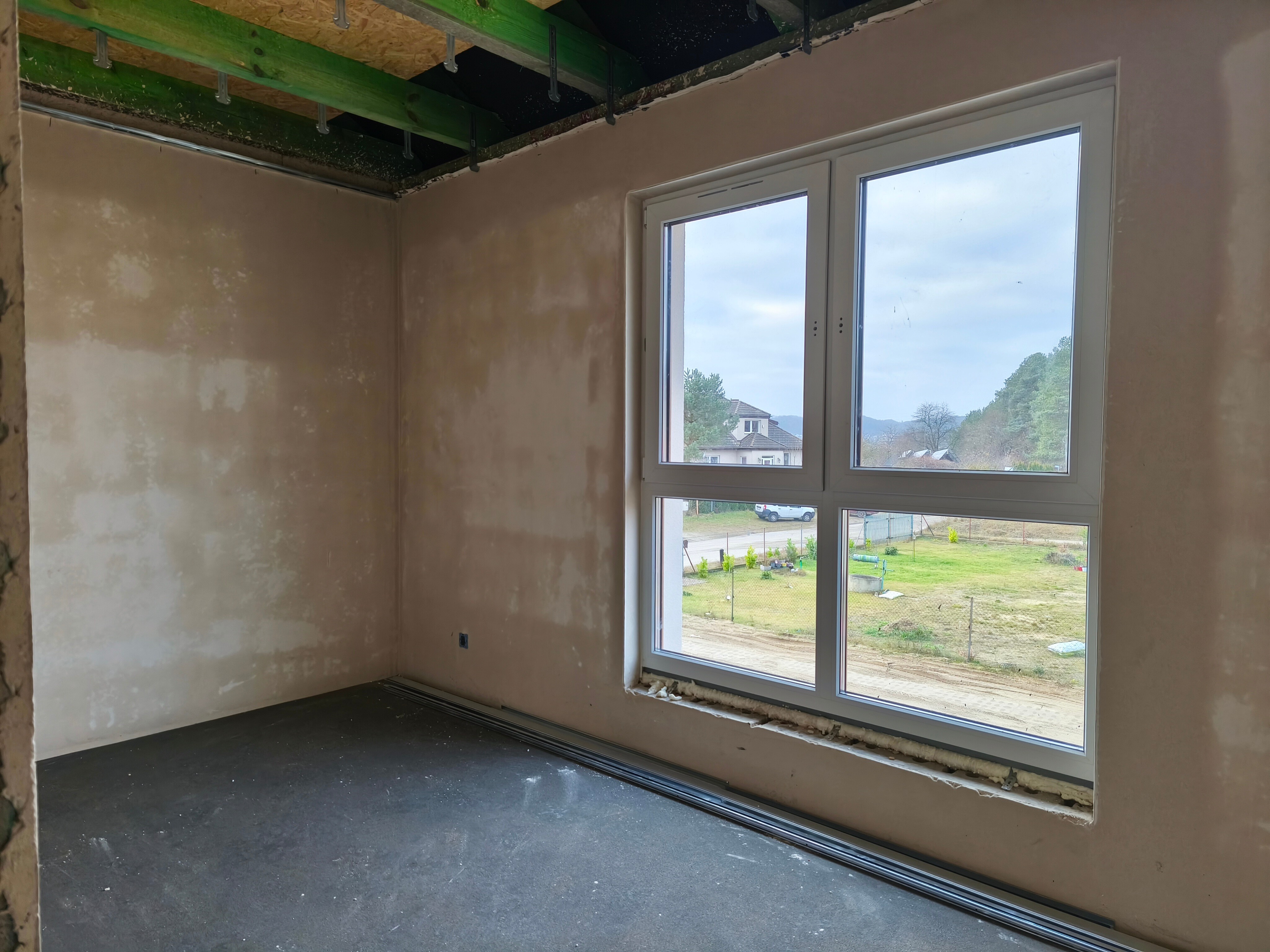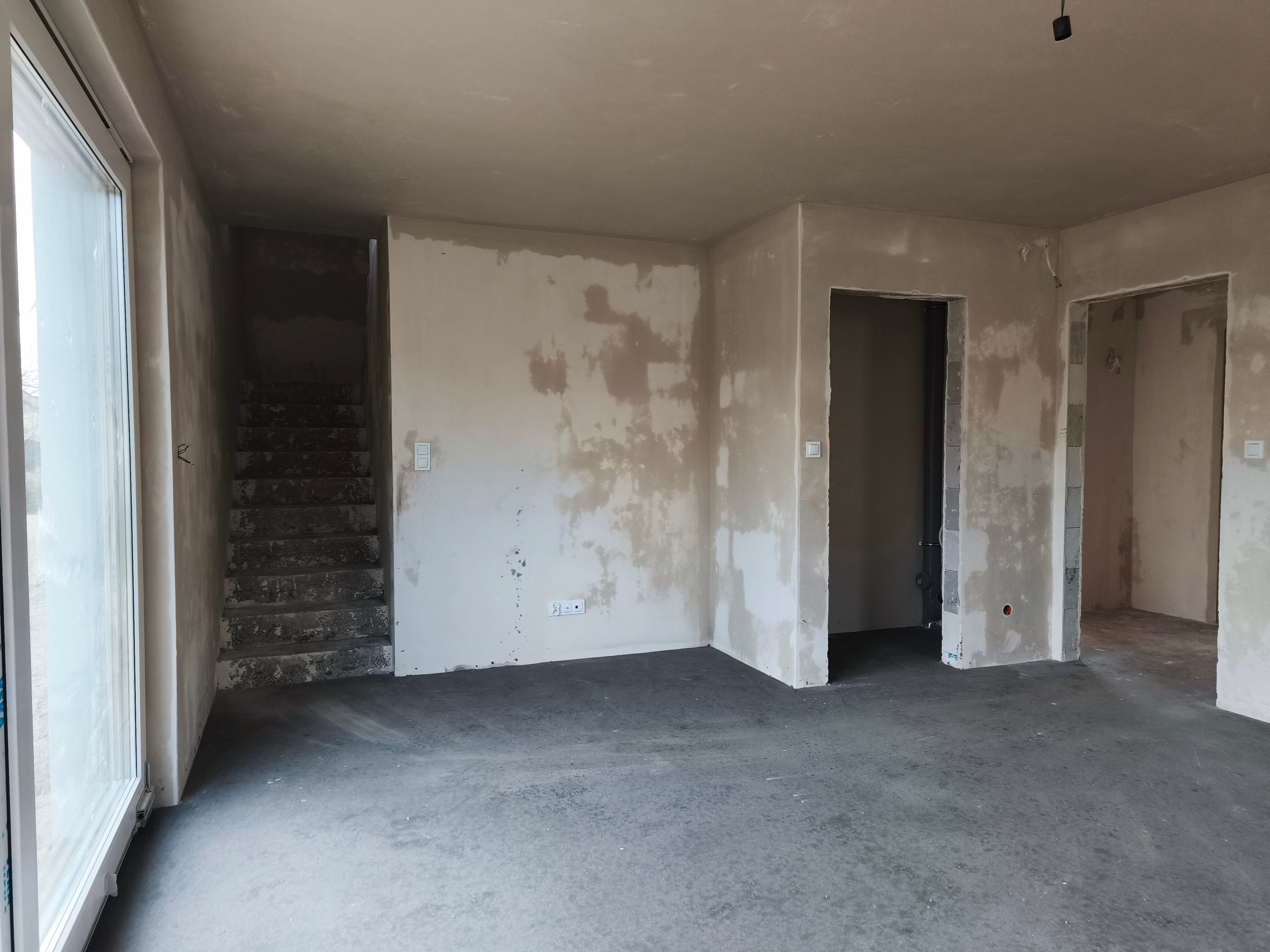 Na parterze główną funkcję pełni przestronny salon z aneksem kuchennym o powierzchni ponad 28m2. Znajduje się tutaj także toaleta, wiatrołap z miejscem na szafę oraz garaż o powierzchni około 16m2.