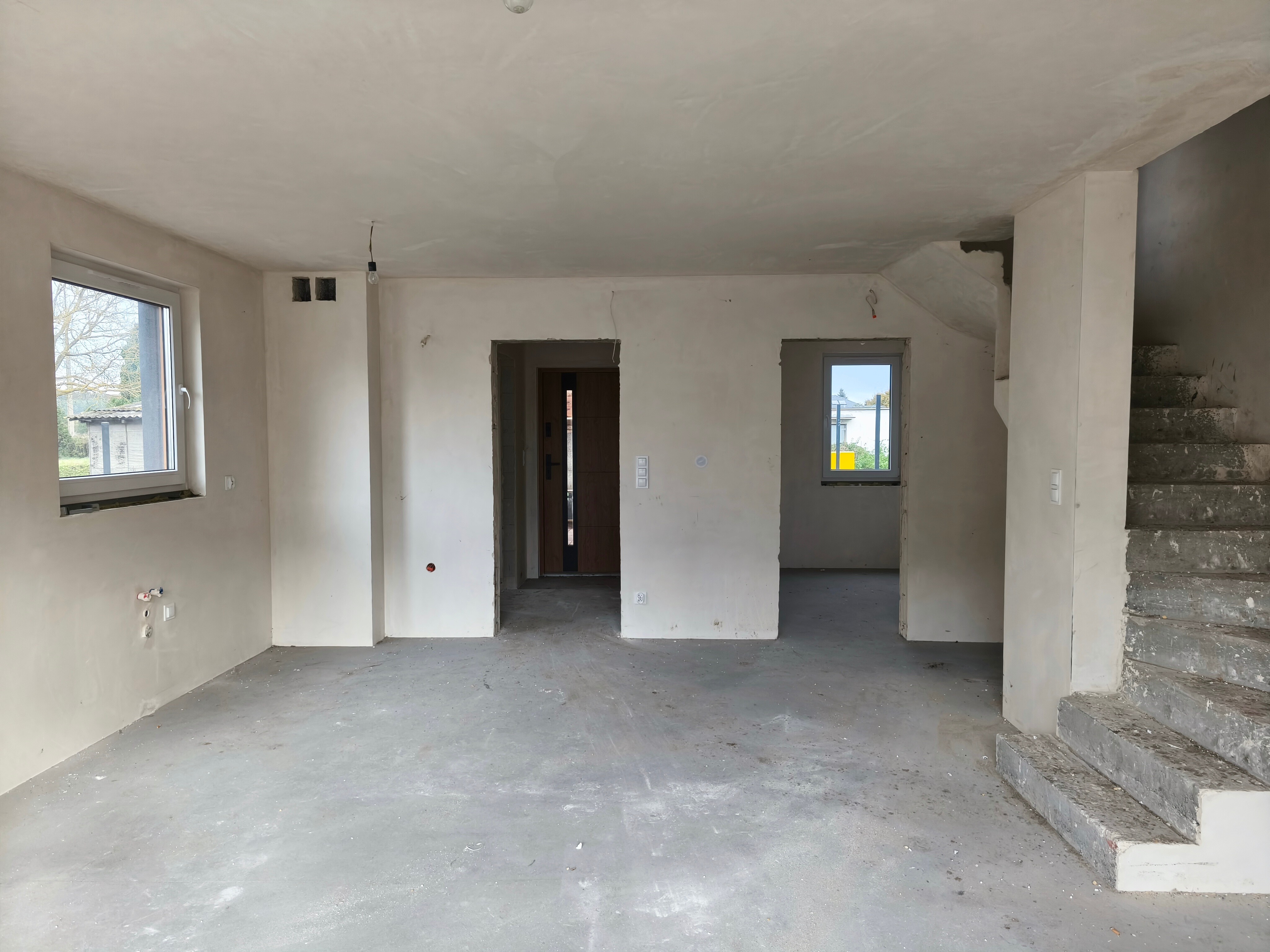 Lokal sprzedawany w stanie deweloperskim, wybudowany z silki 18cm, ocieplony 15cm styropianem, strop pianą, wewnątrz tynki gipsowe, dach pokryty dachówką. W budynku wszystkie media: woda, kanalizacja, prąd i gaz. Ogrzewanie podłogowe, gazowe, piec w cenie.