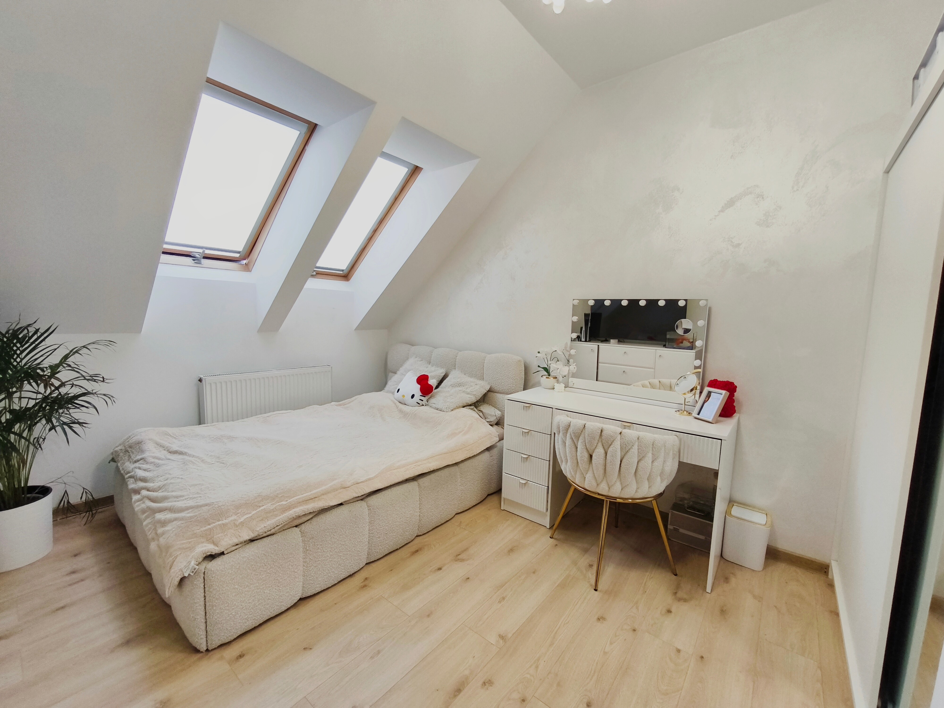 Dodatkowo nad całą powierzchnią domu jest strych, dzięki czemu nie zabraknie Ci miejsca na przechowywanie. Dodatkowego komfortu tej nieruchomości nadaje ocieplony garaż na dwa samochody.